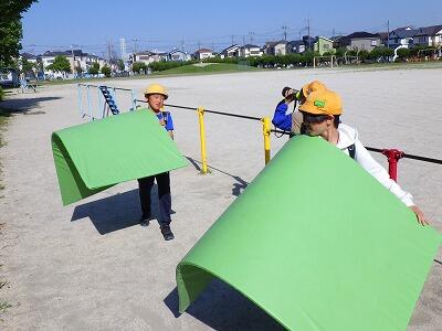 4年生の教室では新聞紙で何かを作っていました。