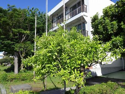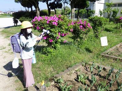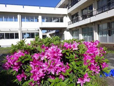 職員玄関と児童昇降口の間に小さな花壇があります。
