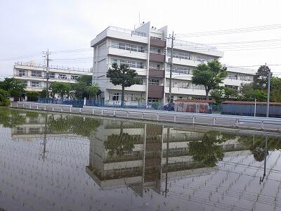 校庭には水たまりが残っています。