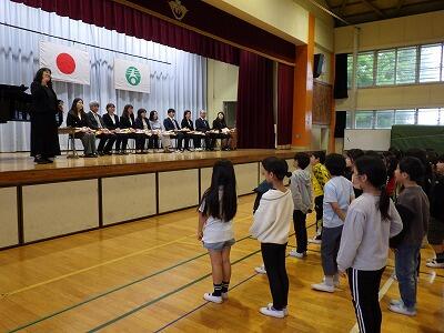 昨日豊野小学校に入学した1年生たち。