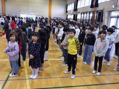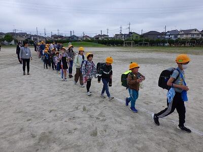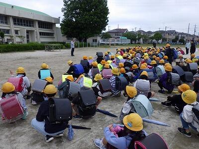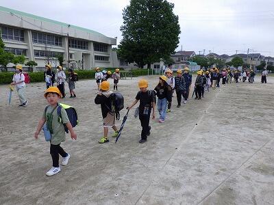 帰りの支度を済ませ、校庭へ移動します。