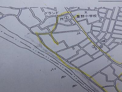 春日部の地形図では、幸松小の近くにこの記号があります。