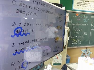 6年生になると式の中に「x」や「y」の文字を使うようになります。