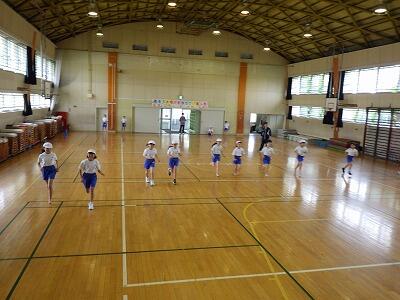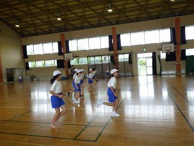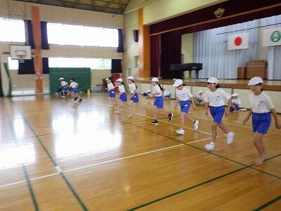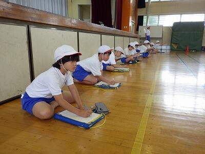体育館では4年生が「シャトルラン」をやっていました。