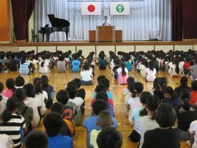 たくさんの保護者の方たちや教育委員会のおかげできれいになった校舎や校庭をきれいに使う心の大切さ。どの子の心にもしっかり届いています。
