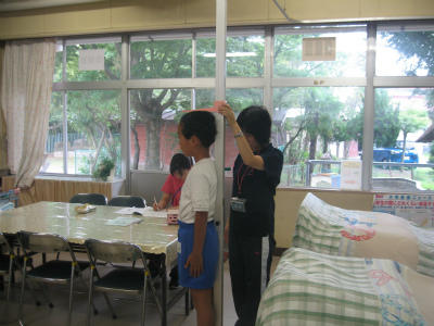 発育測定です。夏休みが終わり、みんな1学期に比べてどれくらい伸びたかな?
