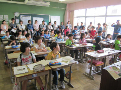 一人一人が大きな声で、一生懸命に1年生のために、歌ったり、呼びかけたりしています。思わず3年生かと間違えるほどです。