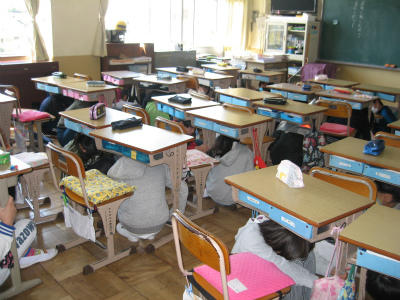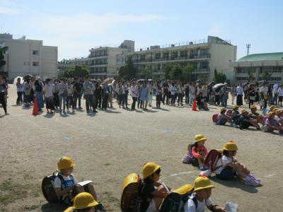給食の前に、1年生だけの避難訓練も行いました。明日は、1年生を迎える会があります。