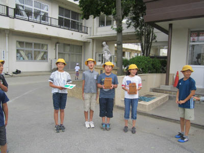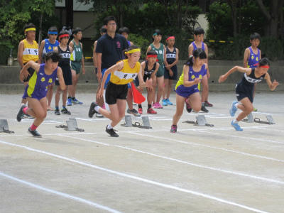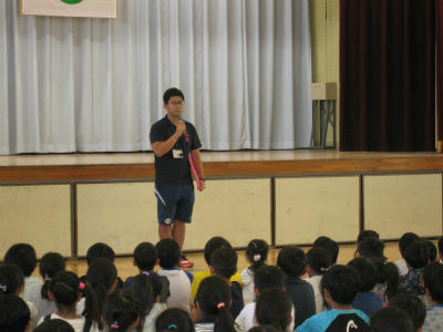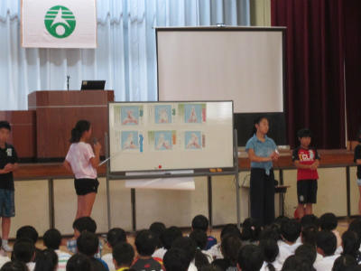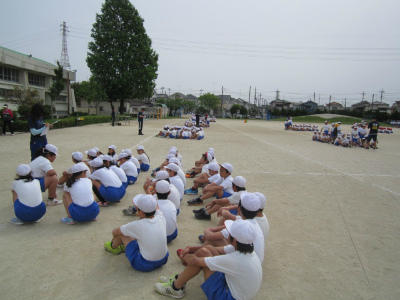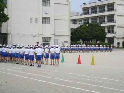 明日は、市内陸上大会のため、今日6月の全校朝会を行いました。