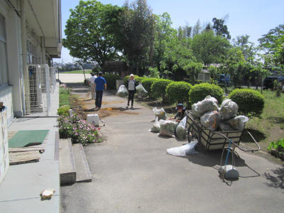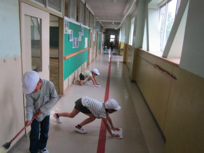 登校すると、すぐに高学年の児童が、昨日の入学式会場を片付けたり、マットの用意や国旗等を掲揚したりしてくれました。頼りになります。