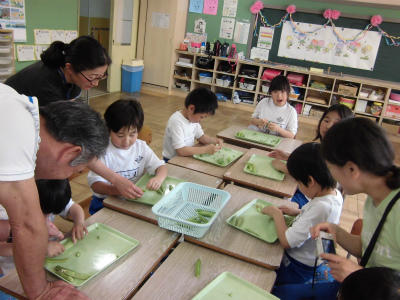 この後、1年生とたんぽぽ学級のみんながむいてくれたおいしいそらまめの給食が待ってるよ~。