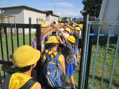 今回の3年生の校外学習は、学校の西側を探検しました。