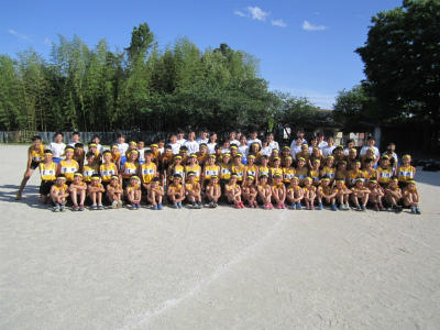 応援よろしくお願いします。会場は、幸松小学校です。この後、応援の児童が出発します。