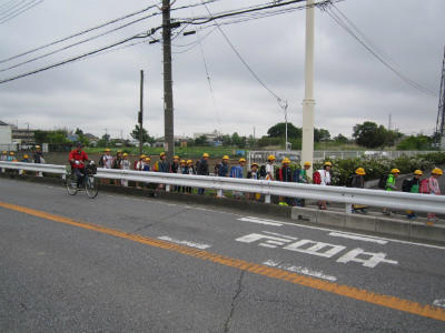 交通指導員さんの指示をしっかり聞いて渡ります。
