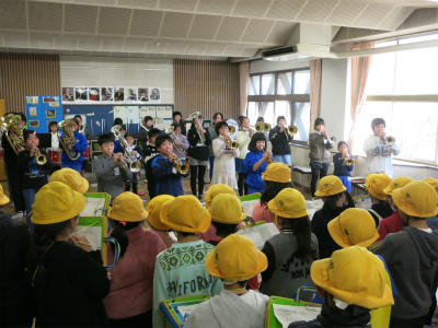 12月11日(日)に演奏クラブ・バトンクラブの子ども達は、豊野町で行われた「ふれあい広場」でマーチングの発表を行いました。地域の方には、先日の豊野地区体育祭に次いで2回目となりますが、たくさんの方に、演奏を見ていただき大きな声援もいただきました。