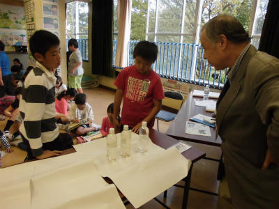 川の水等の水質の違いなどを教えていただいたり、質問に答えたりと、子供たちは充実した時間を過ごすことができました。学んだことを生かし、環境についてさらに関心を深められることを期待しています。