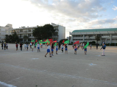 今日は、2回目の全体練習が行われました。入退場の練習の後、全校種目「大玉送り」「応援合戦」の練習を行いました。本日の大玉送りでは、紅組が優勢でした。応援合戦では、応援団長のリーダーシップで全員元気に声を合わせて取り組んでいました。