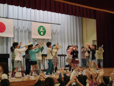 今日は、3年生の音楽朝会がありました。3年生は、「パフ」と「エーデルワイス」を発表しました。パフでは、お手製の楽器を手に、楽しそうに歌を歌い楽器を奏でました。保護者の方もたくさん来校し、とても楽しい音楽朝会となりました。