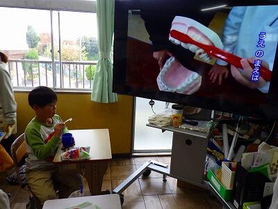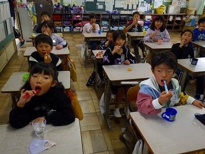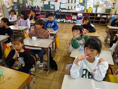 保健委員会の児童が、歯みがきのしかたを教えてくれました。