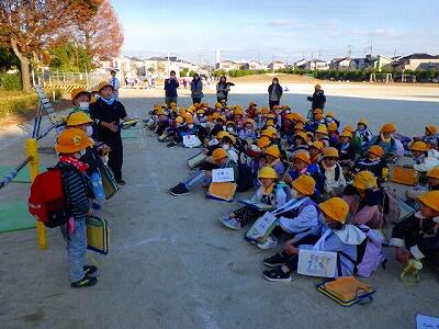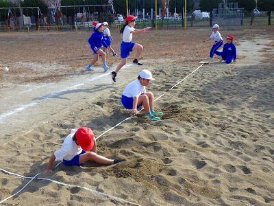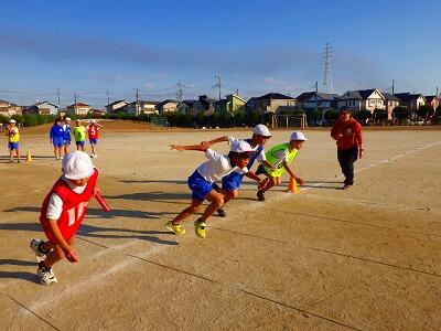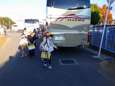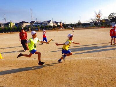 4年生がリレーをしているときに、1・2年生が校外学習から戻ってきました。