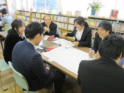 その後の研究協議会の様子です。今日の授業について、グループで協議しています。