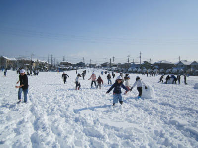 自分たちで校庭に作った雪だるまを邪魔にならないように壊しています。