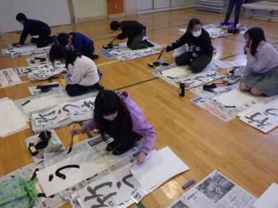 書きぞめ競書会(3・4年生) 投稿日時 : 2023/12/12 編集長 カテゴリ: 体育館で3・4年生の競書会が行われました。 4年生が書く字は「竹うま」です。 3年生が書く字は「せかい」です。 寒いので、大型ストーブで体育館内を暖めます。 これまでの練習を生かして、最高の字が書けるといいですね。