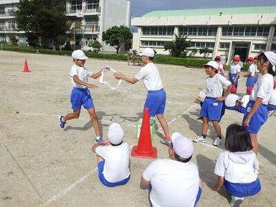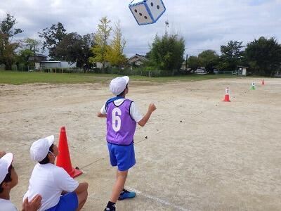 運動会練習(5・6年生) 投稿日時 : 2024/09/30 編集長 カテゴリ: 1時間目に団体競技の練習をしました。 出た目で勝負! サイコロの目によって、走る距離が決まります。 3の目が出ると、一番遠くまで走らなければなりません。 運と走力の勝負です。