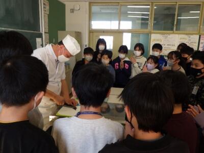 みんなで育ててきたヒラメがまな板の上に乗ります。