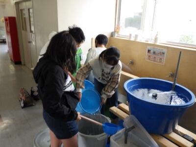 今週のヒラメ 投稿日時 : 2023/11/15 編集長 カテゴリ: 塩の重さを量っています。 海水に近い水をつくるためです。 休み明けの大切なしごとが、水槽の水の一部入れ替えです。 業間休みに手分けをして作業を行います。 全身を使って元気に泳ぐヒラメです。