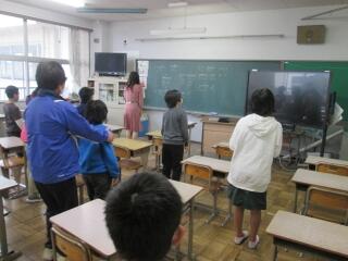 たんぽぽ学級 外国語活動 投稿日時 : 2020/11/24 豊野小学校管理者 カテゴリ: 「レフト・ライト、フォワード・バック」 「スピン・ラウンド、ジャンプ」 曲に合わせて、前後左右に動いたり、 くるっと回ってジャンプしたり。 体を動かしながら、英語を覚えました。