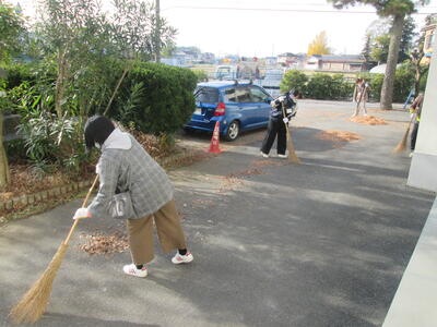 今朝もPTA地区生活部の方々にご協力いただき、落ち葉はきをしました。