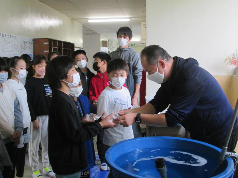 ヒラメの受入(2回目) 投稿日時 : 2022/10/18 豊野小学校管理者 カテゴリ: 5年生が飼育中のヒラメに新しい仲間が加わり、各クラス5匹ずつの合計10匹になりました。 子供たちは、毎日水槽の清掃やえさやりをして、命を育んでいます。