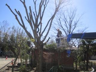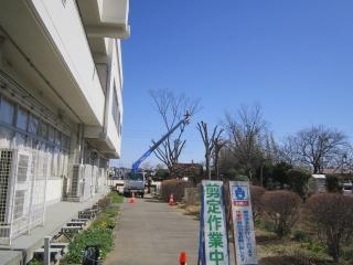 樹木伐採 投稿日時 : 2020/03/06 編集長 カテゴリ: 樹木の伐採を行っていただいています。 保健室横の大きく伸びた樹の枝も、クレーン車で 高いところまで どんどん伐ってくださっています。 校庭の桜の樹も、 手際よく片付けてくださっています。 この後、西校舎裏の2本の樹も剪定していただきます。