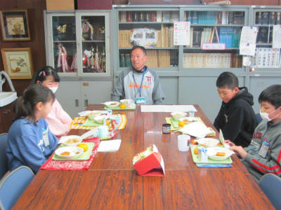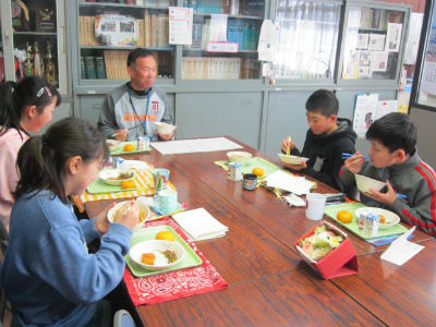 6年会食会 投稿日時 : 2018/01/15 豊野小 カテゴリ: 校長室で、6年生と会食会を行いました。事前に書いたアンケートをもとに話をしながらの会食です。毎回4人ずつの会食会です。小学校の思い出から学校の自慢、得意なこと、将来の夢などについてを聞いています。明日も楽しみです。