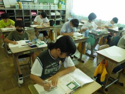 5年生 算数 投稿日時 : 2023/09/01 編集長 カテゴリ: いろいろな三角形の3つの角の大きさの和を調べます。 切り貼りすることによって3つの角の大きさの和がわかりました。 切り貼りでわかったことをもとに、今度は計算で角度を求めます。 本日より、150周年記念写真の申し込みが開始されます。