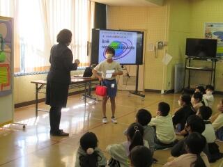 おなか元気教室 投稿日時 : 2022/01/20 編集長 カテゴリ: 外部講師を招いて、出前授業を行いました。 おなか元気のポイント、「早ね早起き朝ごはん朝ウンチ」 下の写真は、全腸内細菌の重さ(約1キログラム)を体験中。