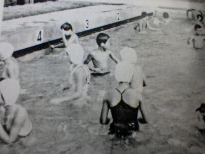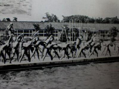 豊野小アーカイブス122 投稿日時 : 2024/07/05 編集長 カテゴリ: 昭和39年度、今からちょうど60年前の水泳学習です。 木造校舎をバックに体操です。 男子は水泳帽子をかぶっていなかったようですね。 女子は、顔半分までを覆う帽子をかぶっていました。 飛び込みも朝飯前でした。(今は行っていません。)