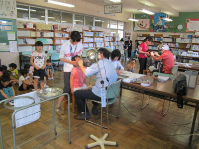 歯科健診 投稿日時 : 2017/05/11 豊野小 カテゴリ: 1年生も緊張しながら、しっかり歯科健診を受けています。たんぽぽ学級のみんなも、上手に「あ~ん。」続いて、2年生も・・・「あ~ん。」虫歯があった子は、早めに治療をしてください。