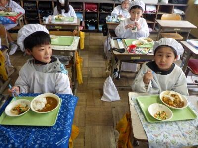 新しい教室で食べる初めてのカレーです。