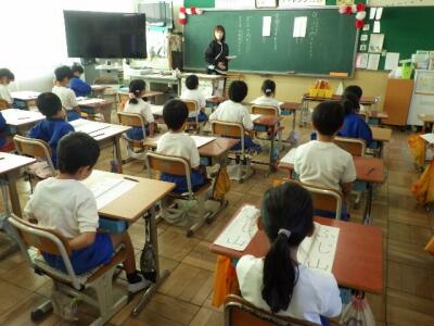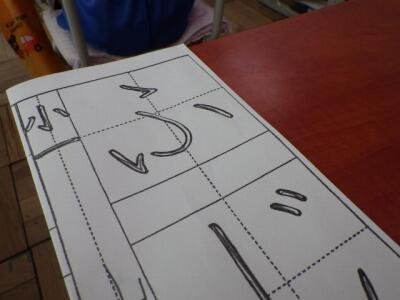 1年生は、フェルトペンで「ふじ山」という字を書きます。