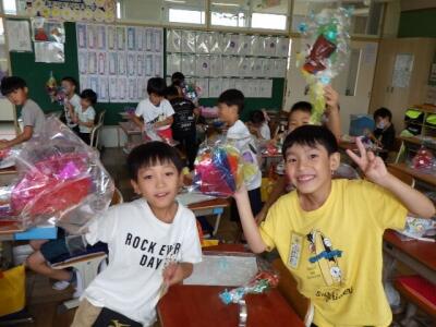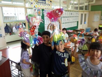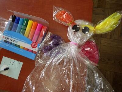 セロファンを使った工作「ひかりのくにのなかまたち」です。