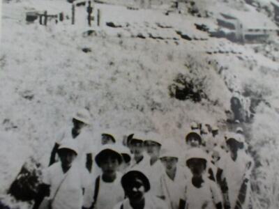 豊野小アーカイブス116 投稿日時 : 2024/06/25 編集長 カテゴリ: 昭和47年度、今から52年前の林間学校です。 場所は不明です。リフトのようなものが写っているので、どこかのスキー場近くだと思われます。 白い体育着の上下。 当時の食事は椅子に座らず、畳の上に正座が多かったようです。