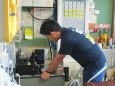 子供たちが帰った後に、不審者が教室に入ってきたという仮定の下、その不審者への対応と素早い通報を行うための訓練を行いました。