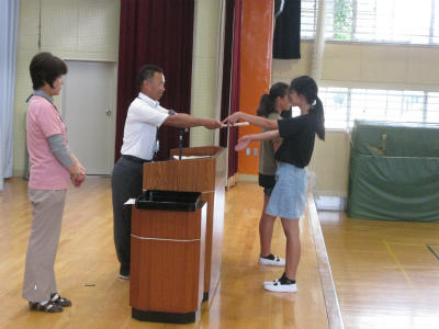最後に、コスモス賞(校長賞)。6年生の2人が、全校のお手本として表彰されました。