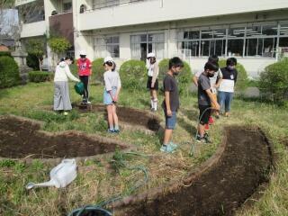 6年生 種植え 投稿日時 : 2022/04/13 編集長 カテゴリ: 学校の花「コスモス」の種を花壇に植えました。 この種は、毎年、卒業生から在校生に引き継がれています。 花いっぱいを想像して、たっぷり水をあげました。