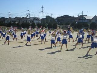 ポンポンをもって、本番に向けた練習の1・2年生。