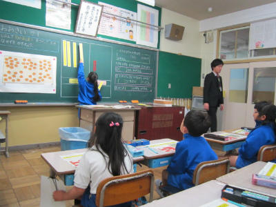 1年2組研究授業 投稿日時 : 2018/01/17 豊野小 カテゴリ: 算数の「おおきいかず」の学習です。「どうやって、大きなかずをかぞえよう?」「わかった!」しっかり手を伸ばして発表。黒板で、みんなに発表です。次の問題も。算数セットを使って確かめ。「うわーっ、むずかしい~」「わかった!」