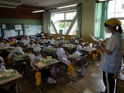 今日の給食では、そうめんと星型のかまぼこを入れた天の川汁をいただきました。