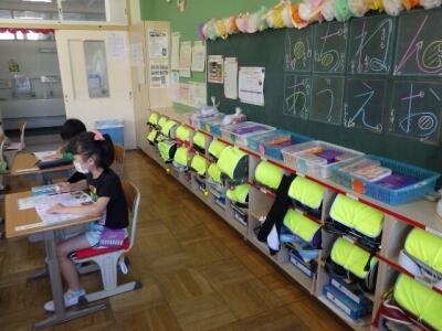 静かに1時間目の準備をしています。